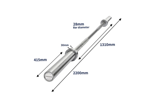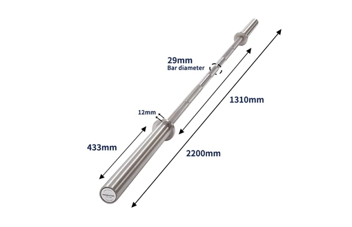 A Varnika Strength Powerlifting Bar, rozsdamentes acél, erőemelő rúd 220 cmx50 mm, 680 kg-ig terhelhető